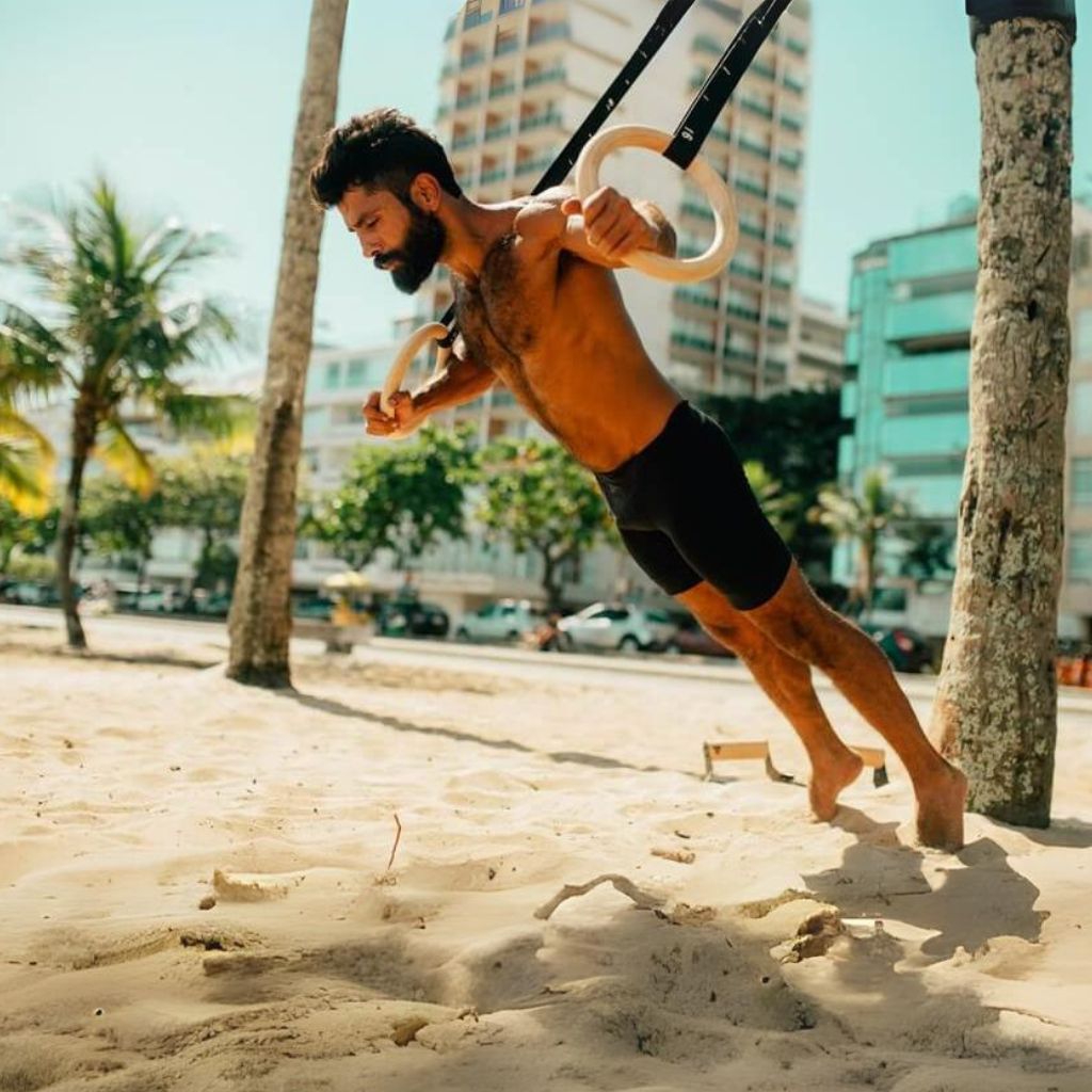 The gymnastic rings can be used in addition to our pull-up bars, so you can carry out many more exercises and complement your Freeletics or Calisthenics training.